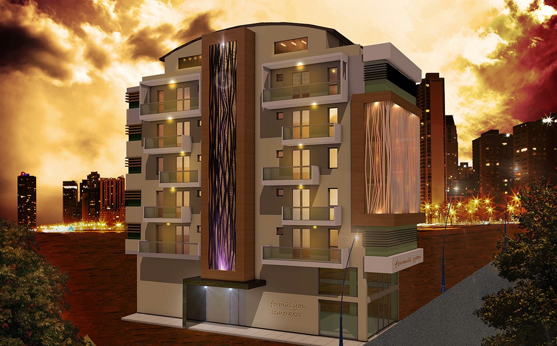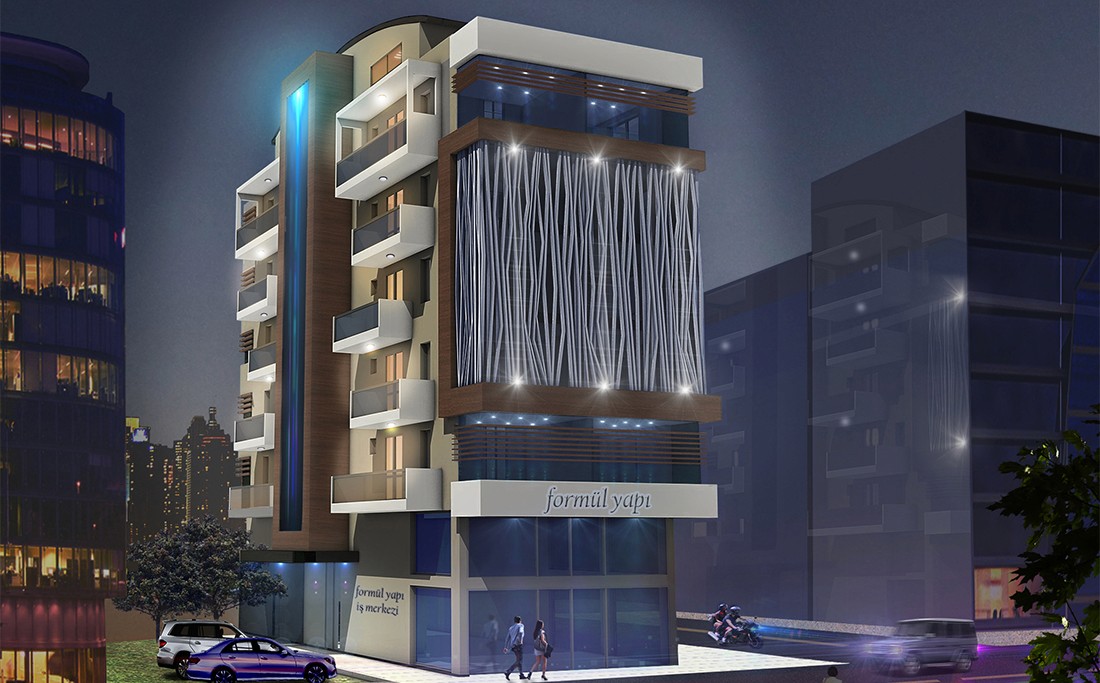 The Formül Yapı Business Center project is a remarkable architectural design combining corporate prestige with modern aesthetics in Antalya’s Old Industrial District, at the heart of urban life. The main façade gains a distinctive identity through transparency and dynamic vertical lines.
