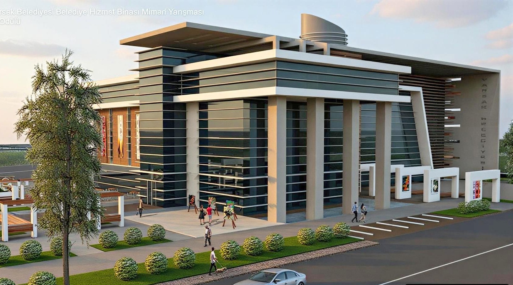 The mayoral entrance is designed independently from the public entrance, and access to the mayoral and council units is provided via a bridge connecting the buildings. Landscaped public areas and pedestrian axes in front of the building aim to create a transparent, contemporary, and city-integrated administrative center for Varsak.